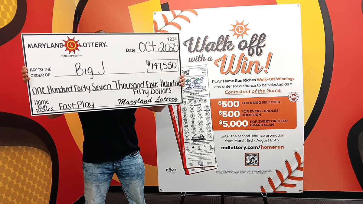 A Bowie man hit a walk-off win as he picked up a $147,550 progressive jackpot on the FAST PLAY Home Run Riches Walk-Off Winnings game on Oct. 1.