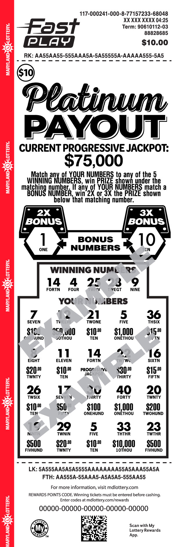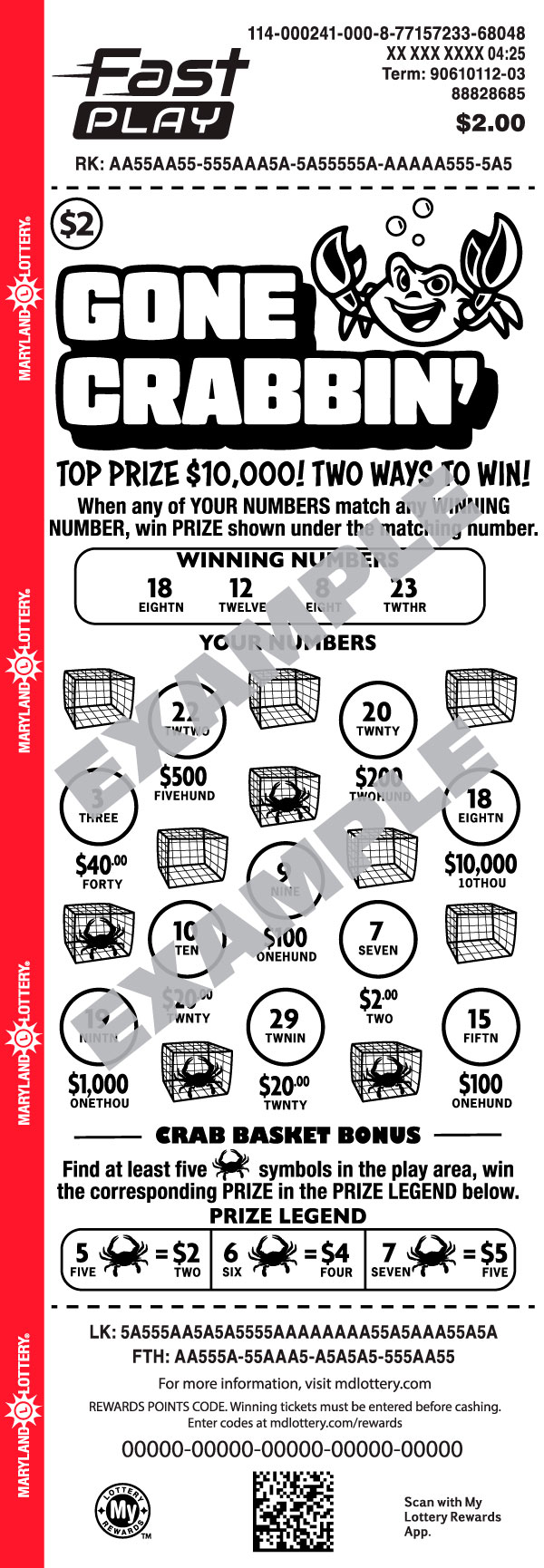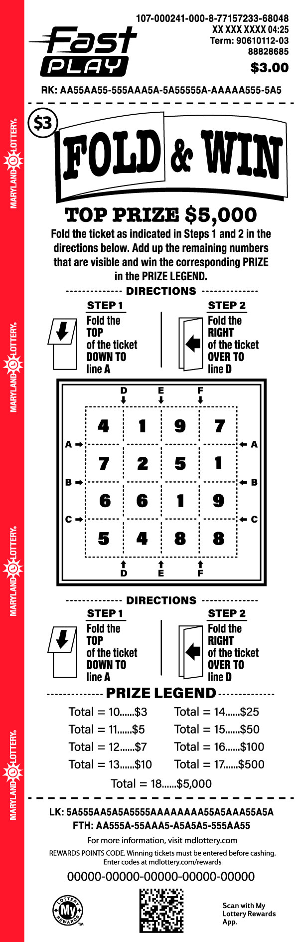 Now playing is even more rewarding. Join My Lottery Rewards for a chance to turn eligible FAST PLAY tickets into eligible prizes. Visit mdlottery.com/rewards to learn how.