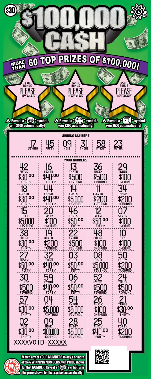 A $30 ticket with 43 chances to win and a top prize of $100,000.